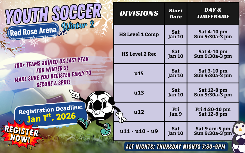 Register Your Youth Team for our Winter 2 Season!